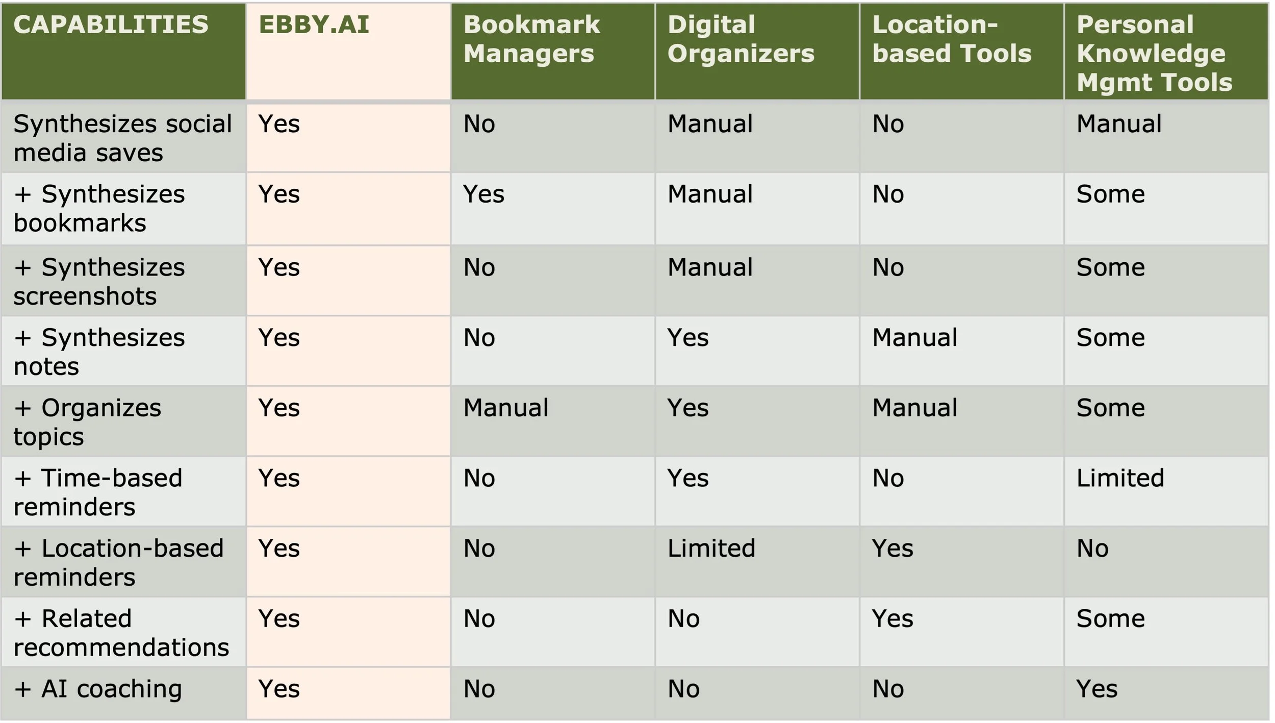 Ebby eliminates the chaos and clutter. Creates space. Connects dots. All in one
